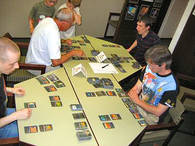 | Die Sammelkartenspieler in Aktion | Ein Blick in den großen Saal | |