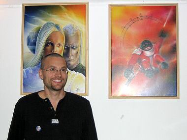 | Michael Gottfried vor seinen Werken | Swen Papenbrock am Zeichnertisch | |