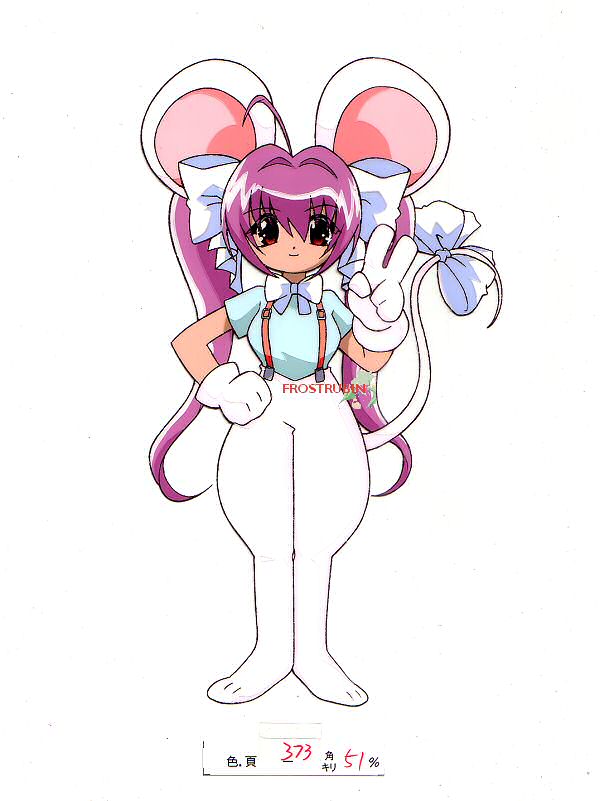 Rabi-en-Rose hanken mono cel number 373 for a trading card game. She is soooo cute in this little mouse outfit!