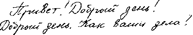 | auf Deutsch | Guten Tag! Grüß Gott! Hallo! Servus! Willkommen! |