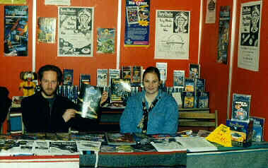 Kurz vor Schluß kommt dann Michael, um nach dem Rechten zu sehen <g>. Wir nehmen uns jetzt auch unsere Souvenirs, sprich diverses Werbematerial, vom Tisch und machen uns aufbruchfertig. Davor gibt es jedoch noch einen kurzen Fototermin, bei dem wir nicht nur den Stand, sondern auch uns entsprechend festhalten.