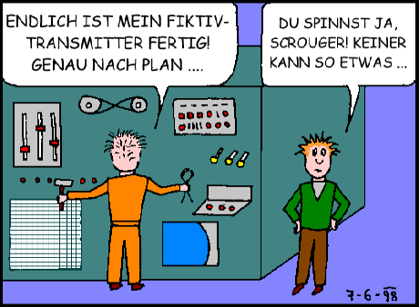 Die "Emit Tidnabs" wurden in der Nacht vom 31.10. auf den 1.11.1983 zusammen mit einigen anderen Kameraden geboren. Seit dieser Zeit treiben sie ihr Unwesen und erleben viele Abenteuer in aller Welt und im Perry Rhodan Universum. Diesmal kommen wir ohne allzuviel Vorgeplänkel gleich zur neuen Geschichte. Wir erinnern uns - in den letzten Folgen wurde Scrouger von einigen Kameraden ein böser Streich gespielt. Man machte ihn glauben, Perry Rhodan höchstpersönlich hätte seinen Zellaktivator beim Pokern an ihn verspielt. Als er den Verantwortlichen zur Rede stellt und sein Geld zurückverlangt, erhält er als Entschädigung die Pläne eines Fiktivtransmitters. Arglos, wie Scrouger ist, glaubt er die ganze Sache ....