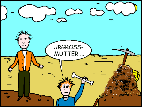 Am Ende wird dann der Text eingefügt. In der ersten Folge der Tidnabs (siehe Archiv) gab es noch echtes "Handlettering", aber mittlerweile bin ich draufgekommen, daß das im PC direkt viel einfacher geht und mit der Schrift "Comic sans" auch besser aussieht :-)