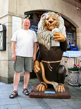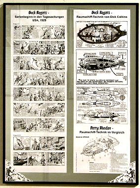 verhindert. Während der Fahrt vertrieben wir uns die Zeit mit Diskussionen über die Zulässigkeit von externen P.R.-Stammtischen und ob man Romans letzte Abhaltung eines solchen wirklich werten könne, aber wie gesagt, ab sofort gibt es keine Ausnahmen mehr, basta! ![]() ![]() Links der »Universums-Löwe«, rechts Harald Havas mit FRED und Bernd Frenz Nach der Ankunft im Hotel und einem kleinen Mittagessen gingen wir natürlich sofort zum Deutschen Museum, das nur einen Steinwurf über die Isar entfernt war. In einem Nebengebäude waren die Stände der Comic-Verlage und der Händler aufgebaut, in der Etage darunter waren die Ausstellungen sowie die Veranstaltungsbühne zu finden. Beim Einchecken fiel unser Blick sofort auf einen großen Stapel Leseproben zum P.R.-Band 2300 da hatten die Werbemannen von VPM ganze Arbeit geleistet! Aber auch im Händlerbereich blieben wir nicht verschont alte PERRY-Comicbände hier, Kisten mit ATLAN- und P.R.-Romanen dort , schön langsam konnte man einen Verfolgungswahn bekommen! Als mir dann noch Martin sein Zeichenbuch mit einer parodistischen Darstellung von Perry unter die Nase hielt, fabriziert von einem Zeichner der neu geplanten P.R.-Comics, bekam ich endgültig ein mulmiges Gefühl (Anmerk. d. Red.: Die Zeichnung von »PERRY HODEN« kann an dieser Stelle aus jugendschutzrechtlichen und geschmacklichen Gründen leider nicht gezeigt werden). Da half wohl nur eine Flucht in den Keller, wo zahlreiche Ausstellungen zu Comic-Themen gezeigt wurden. Interessant war eine Präsentation von »Buck Rogers« und eine Gegenüberstellung zu anderen SF-Serien. Eine Schautafel verglich die Rogersche Raumschifftechnik sogar mit der von PERRY RHODAN! ![]() ![]() ![]() P.R.-Leseproben beim Eingang (im Dutzend billiger ^^), RHODAN'sche Raumschifftechnik und der duale Kapitän? Wieder zurück eine Etage höher, lief uns der ATLAN-Autor Bernd Frenz über den Weg, und dann trafen wir noch zwei Mitglieder vom Münchner PERRY RHODAN-Stammtisch. Dermaßen weichgekocht begaben wir uns abends ins Restaurant »Dönisl«, das wir als externes PERRY RHODAN-Stammtischlokal auserkoren hatten, um uns etwas von P.R. zu erholen, aber als Erich eine 2300er-Leseprobe hervorholte, um damit ein Beweisfoto zu machen, ging es schon wieder los: Wer ist der »Duale Kapitän«? Der Duden meint dazu, dass »dual« vom lat. »dualis« kommt« und »zwei enthaltend« oder »eine Zweiheit bildend« bedeutet. Irgendwie habe ich dabei immer das Titelbild eines alten JOHN SINCLAIR-Romanes vor Augen, nämlich den »Mörder mit dem Januskopf«, aber so wird der neue Protagonist hoffentlich nicht aussehen. Wir ließen uns das Essen trotzdem schmecken. Es gab herrliche Schweinsbraten mit knusprigem Schwartl und delikate Mastenten, und bei der Nachspeise griffen wir zu warmem Apfelstrudel in selbstgemachter Vanillesoße. Als kleine Überraschung erfuhren wir, dass es (schon wieder) neue P.R.-Figuren geben soll, diesmal von Dirk Schulz und etwas größer als die Papenbrock-Figuren, und gestartet werden soll mit Rhodan und Atlan. ![]() ![]() Munter in der Stadt (Martin) oder müde auf dem Fest (Erich). Alles in allem war es ein schöner Tag gewesen, und ich hatte nach dem schweren Essen nur eine große Befürchtung: dass mich Perry, nachdem er mich den ganzen Tag begleitet hatte, auch nachts noch in meinen Träumen belästigt!