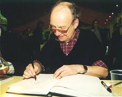 Präsidenten des Festivals 2002 bestimmt wurde. Auch die wirtschaftliche Bedeutung des Festivals für die Stadt darf man nicht unterschätzen. Dies gilt umso mehr, als die Gegend um Angouleme, die Region "Charente", zu den diesbezüglich eher problematischen in Frankreich zählt. Ein Lokalbesitzer erzählte mir beispielsweise, daß er in den vier Tagen des Festivals soviel Umsatz mache, wie sonst in einem ganzen Monat. Man darf daher nicht vergessen, daß das Festival für die Stadt von lebenswichtiger Bedeutung ist. Für viele Menschen hier bedeuten Comics in diesen Tagen nämlich nicht Spaß und Freizeitbeschäftigung sondern einen bitter notwendigen Broterwerb. Auch daran, glaube ich, sollte man manchmal denken, wenn man voll Begeisterung durch die Stadt geht. ![]() ![]() Pierre Christin und Dany Zieht man eine Bilanz des Festivals, so