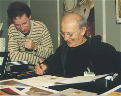 ![]() Links das Comic-Museum, rechts Druillet beim Signieren Eine der Ausstellungen war wie üblich auch