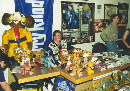 Am Stand der PRFZ konnte man bereits die neue Generation von Plüsch-Guckys bewundern, allesamt Prototypen, die noch nicht zum Verkauf standen - Iltu, Jumpy, Admiral Gecko, Gucky mit Weihnachtsmannmütze, Gucky in der Badehose und als Nachbildung der alten Original-Figur. Und über allen thronte der Ilt in Lebensgröße. Außerdem waren ein Topsider und ein Blue zu sehen, die es aber nicht vor nächstem Jahr geben wird.