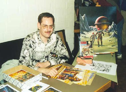 Auch am Tisch von Al Kelsner drängten sich die Fans, die sich unbedingt eines der unzähligen Bilder in allen Größen mit nach Hause nehmen wollten. Al ist Werbegraphiker und ebenfalls Autodidakt, was seine Zeichnungen betrifft. Eingestiegen in das Perry Rhodan Universum ist er im MdI-Zyklus. Ralph hat als einziger eine sechsjährige Ausbildung in Amerika absolviert.