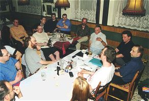 Um zwei Uhr morgens wurden wir freundlich aber bestimmt aus dem Lokal hinausgebeten. Kurz diskutierten wir noch im Freien, bevor wir uns bei KNF für seinen Besuch bedankten und uns in alle Himmelsrichtungen zerstreuten. Klaus und Andreas erwarteten in einem anderen Lokal noch den Sonnenaufgang, der angeblich ganz prachtvoll gewesen sein soll. Ob wir von diesem Gespräch auch einen Bericht bekommen ...?