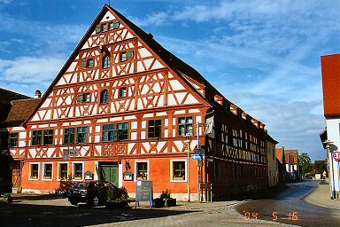 Um elf Uhr ging es dann los, und 500 Kilometer und sechs Stunden später waren wir da. www.map24.de hatte uns ziemlich geradlinig nach Schwanstetten gebracht, wo wir zuerst in einem alten Fachwerkbau namens Zum Schwan unsere Zimmer bezogen und dann gleich zum Con-Gebäude weiterfuhren. Stell dir vor, es ist Con, und keiner ist da Beim Con-Gebäude handelte es sich um eine recht idyllische Anlage inmitten von Wälder, Wiesen und kleinen Teichen und erinnerte entfernt an das Garchinger Bürgerhaus. Blaue PERRY RHODAN-Pfeile wiesen uns den Weg von der Straßenabzweigung bis hinein in das Gebäude, aber dann verlor sich die Spur. Es machte sich eine gewisse Unsicherheit breit, als wir hinter der ersten Saaltüre, die wir öffneten, nur ein paar Kinder beim Fußballspielen sahen. Auch hinter der nächsten Türe wurde Fußball gespielt (na ja, kein Wunder, es war der zweite Eingang in den gleichen Saal) und dahinter gab es einen Saal mit Tischtennisspielern. Wo waren die Con-Säle? Als wir gerade die Zeit- und Ortsangaben der Veranstaltung überprüften und einen Lageplan der Anlage studierten, kamen die ersten Organisatoren.