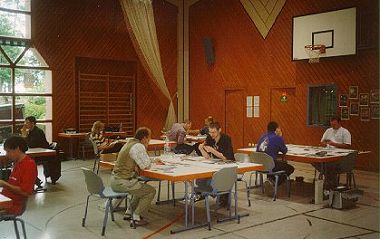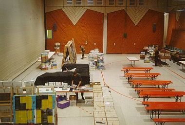 ![]() Gut zwei Jahre zogen sich die Vorbereitungen zum FrankenCon 2002 in Schwanstetten hin. Der PERRY RHODAN-Club ARGE FESTAK und der Stammtisch Nürnberg wollten in gemeinsamer Zusammenarbeit endlich einen eigenen Con veranstalten. Die ARGE FESTAK hatte schon mal ein kleineres Treffen in Bamberg mit Erfolg veranstaltet (damals waren es bis zu dreißig Besucher), diesmal sollte die ganze Sache etwas größer ausfallen. Unser Team bestand auf folgenden Personen: Dieter Reich, Harald Schäfer, Bernhard Flierl, Karola Baier, Werner Bald, Norbert Reichinger, Marvin Seiffert, Walter Schuster, Rita Grünbein, Walter Sehrer, Gernot Semmer, Heinz Hell und meine Wenigkeit insgesamt also die Wilde 13, sozusagen. Am Anfang war noch Detlef Dörres dabei, unser Stammtischkontakter, der aber bald wegen beruflicher Belastung und Zweifel am Erfolg des Cons unter den geänderten Rahmenbedingungen (es wurde nur noch ein Autor vom Verlag gestellt) ausstieg. Als Con-Ort wurde Schwanstetten ausgewählt. Natürlich wären wir lieber in der Frankenmetropole Nürnberg selbst gewesen, aber dort waren die Mieten für Hallen unbezahlbar. Wir wollten ja wenigsten mit wenig, am liebsten mit gar keinem Verlust aus diesem Projekt aussteigen. Daher fiel die Wahl schließlich auf das eher ländliche Schwanstetten - eine Entscheidung, die wir später nicht bereuten. ![]() ![]() Mit der Gemeindehalle war ein idealer Con-Ort gefunden worden. Die Halle konnte durch Trennwände geteilt werden, somit war genügend Platz für einen frei begehbaren Händlerraum und einen Hauptraum für das Programm und die Clubtische. Weiters gab es einen dritten Raum, in dem die P.R.-Tradingcardweltmeisterschaft stattfand und eine Kunstausstellung untergebracht wurde, wo neben vielen Bildern auch auch P.R.-Sammelstücke begutachtet werden konnten. Die angrenzende Bürgerstube sorgte für eine sehr gute Verköstigung. Das FrankenCon-Team hatte dafür sogar eine eigene Speisekarte zusammengestellt. ![]() ![]() Die etwa 100 Meter entfernte Bushaltestelle sorgte für eine gute Verkehrsanbindung für Leute ohne PKW. Auch gab es ausreichend Parkmöglichkeiten für Fans, die mit dem Auto anreisten. Das Congebäude war also ideal und sollte im Lauf der Veranstaltung noch oft gelobt werden. |
