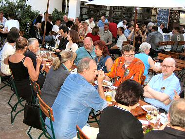 | Freitag abends im Gastgarten - hier der Autorentisch | Ernst