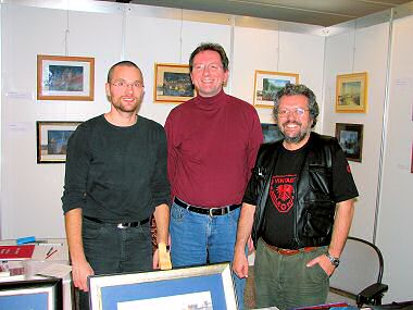 SONNTAG, 26. November 2006Während sich die einen an diesem Sonntag noch ausschliefen, waren die anderen bereits voll im Einsatz und standen bei der Spielemesse den Besuchern Rede und Antwort oder verteilten Prospekte und Kugelschreiber. Tatsächlich war heute wohl der stärkste Tag an diesem langen Wochenende, und es kamen auch wesentlich mehr Besucher zu unserem Stand. Doch Roswitha, Gilbert und Thomas waren natürlich bestens gerüstet, das PERRY RHODAN-Universum auch den Nichteingeweihten angemessen zu vermitteln. Und für den Fall der Fälle hatten wir ein großes Schwert am Tisch, von dem wir jedoch zum Glück außer für Fotozwecke nie Gebrauch machen mussten, und so konnte Karl Heinz sein Souvenir aus Spanien am Abend wieder ruhigen Gewissens wieder mit nach Hause nehmen.
