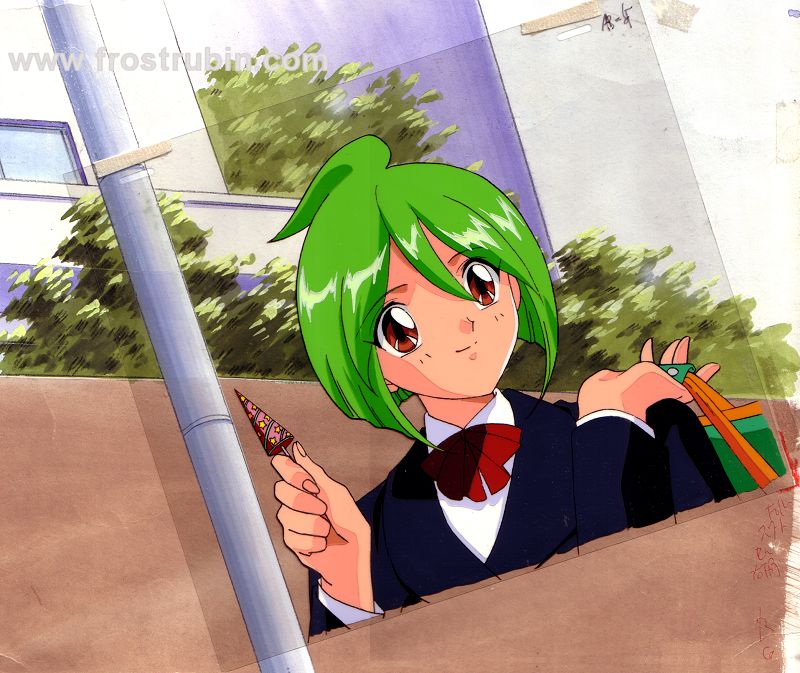 (A1endkey/B1) with original huge BG (32x36 cm). The cel has a slanting